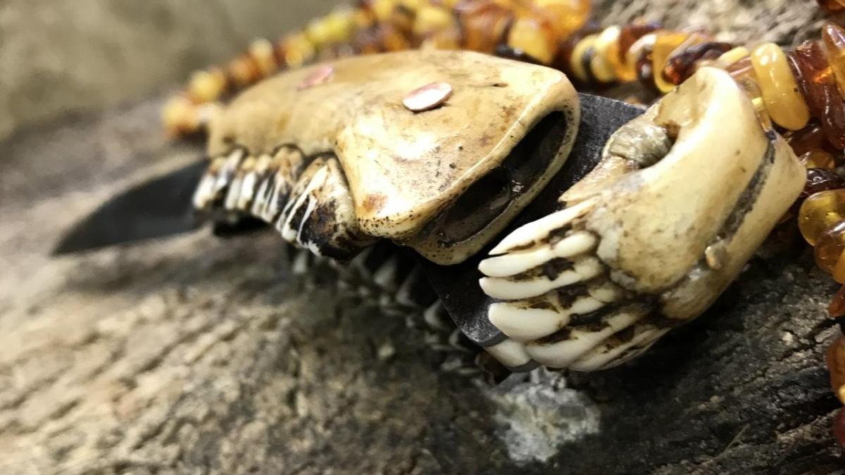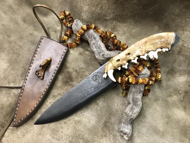 6 couteaux de table... lame rélaisée dans du plat de XC 75, mâchoire de chevreuil, tendon artificiel